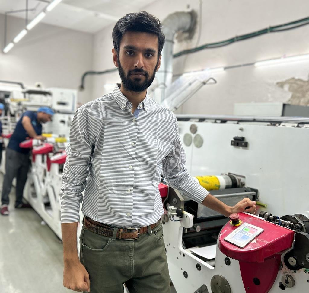 Alpine containers Pvt. Ltd. Jammu is a company producing labels and packaging, at the northern most location in India for labels, founded by Harish Gulati who mentored his 40-year-old son Vipul Gulati from starting as a trainee to taking up a leadership role in expanding the company. Though Harish had set up the printing business manufacturing mono cartons in 1978 in an 800 square foot premises, but Vipul joined in 2003. The present company Alpine was established in 2008 when they expanded into corrugated board cartons. In 2012 they installed an automatic corrugation plant, the first one to be setup in entire region of Punjab and Jammu and Kashmir. Vipul Gulati did his schooling from Prestigious Maharaja Hari Singh School Nagbani and BBA degree from Lovely University. Vipul led Alpine’s venturing into label manufacturing in 2015 with installation of a Gallus ECS 340 label press then a Mark Andy P 7 in 2019 and another Label press in 2022 along with 3 inspection machines and screen-printing machine. As Executive Director of the company, Vipul is responsible for purchases, new developments, expansion and day-to-day operations. He is expanding label business beyond Jammu, setting up a manufacturing plant in Gujarat.